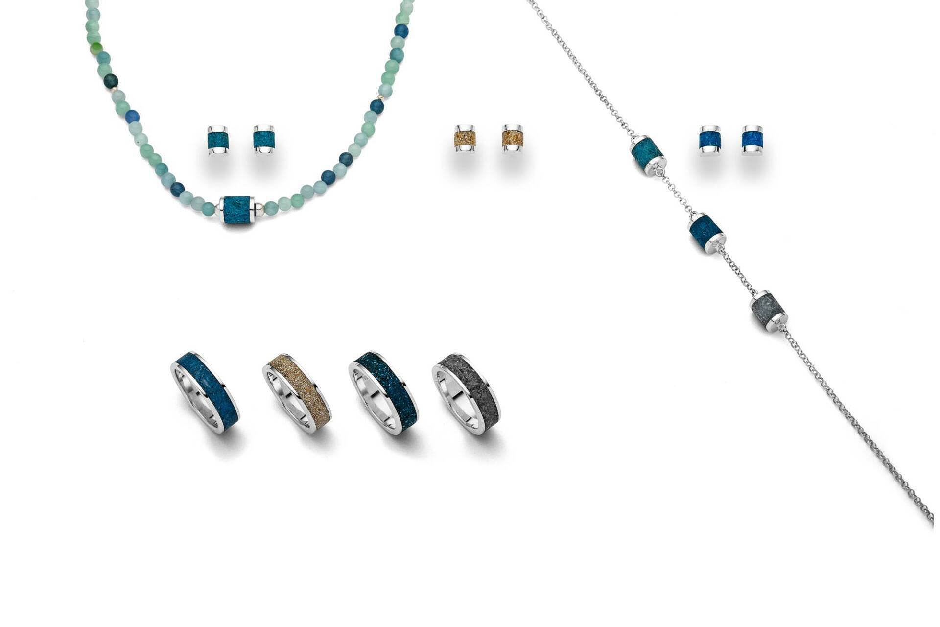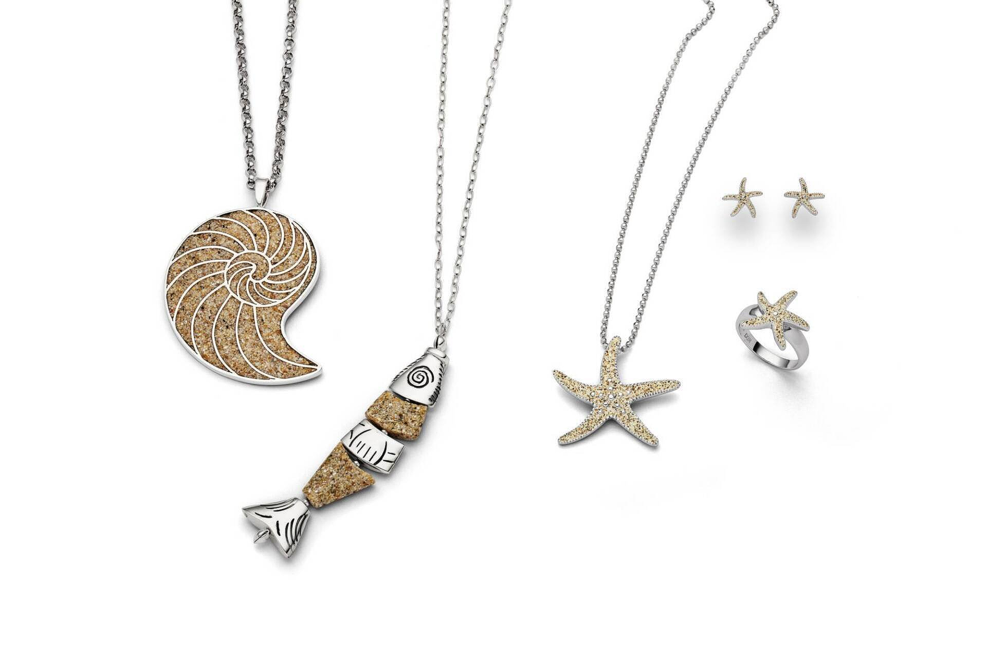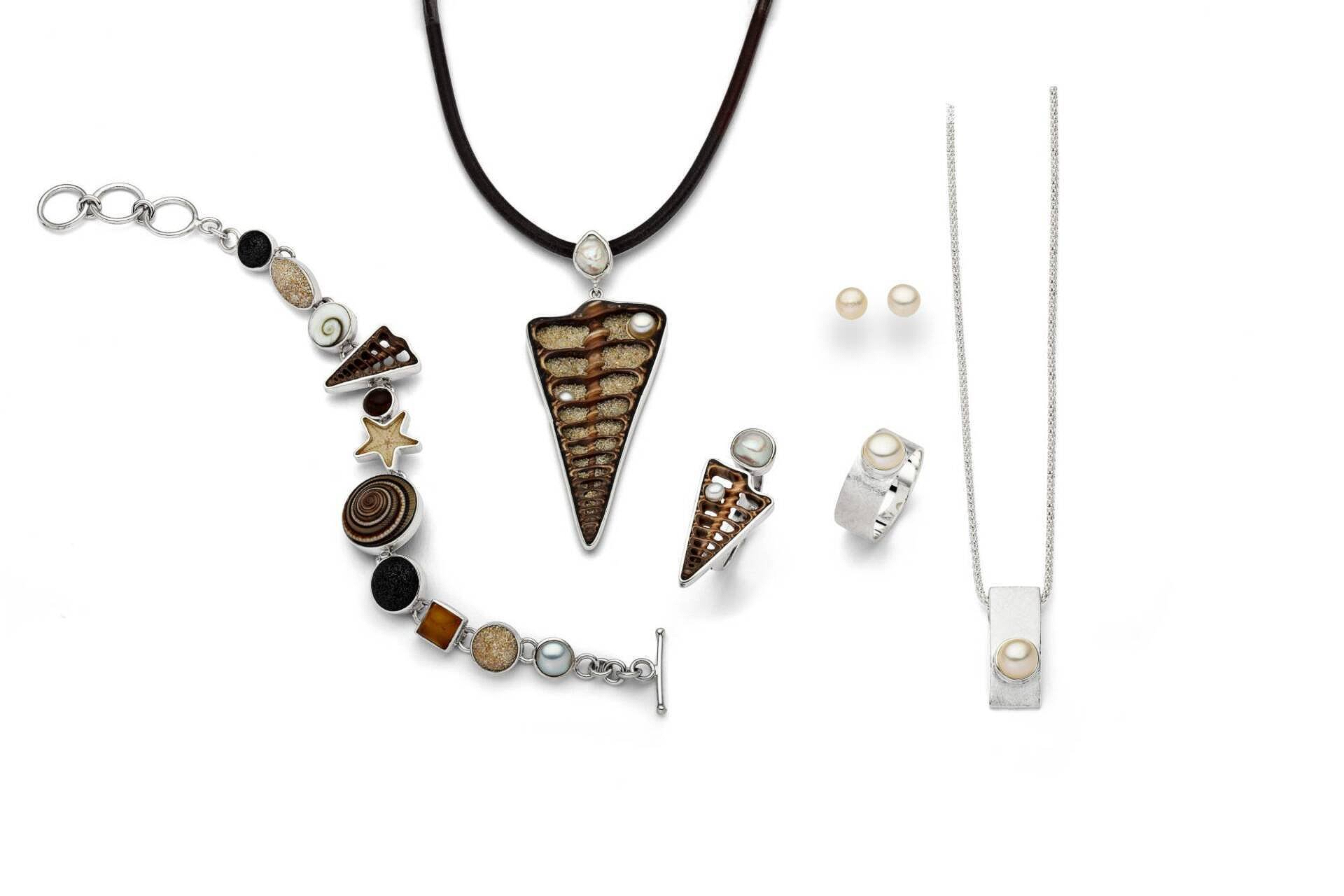 Dur Schmuck verwendet für alle Schmuckstücke 925er Sterling Silber kombiniert mit ungewöhnlichen Materialien, wie Sand von echten Nordseestränden oder Lavasand, Muscheln, Perlen, Korallen und noch viel mehr.